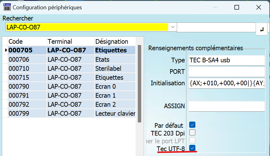 Ligne étiquette correspondante :